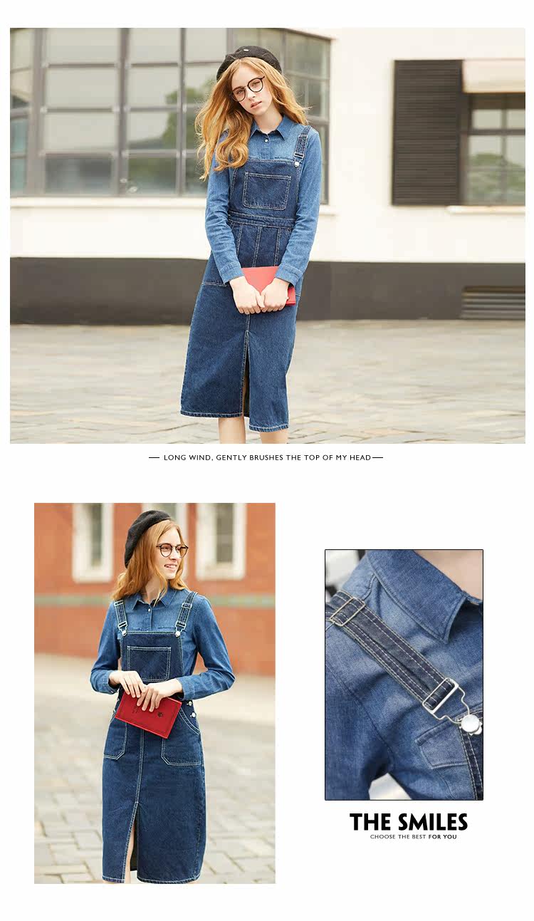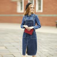 唐狮2016秋装新款半身裙 女前开叉吊带背带裤牛仔背带时尚中长裙