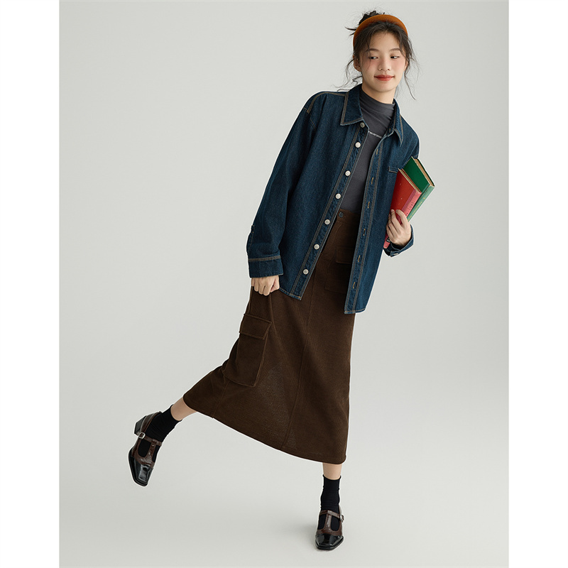 德玛纳牛仔衬衫女新款秋季气质法式上衣长袖时尚洋气复古衬衣