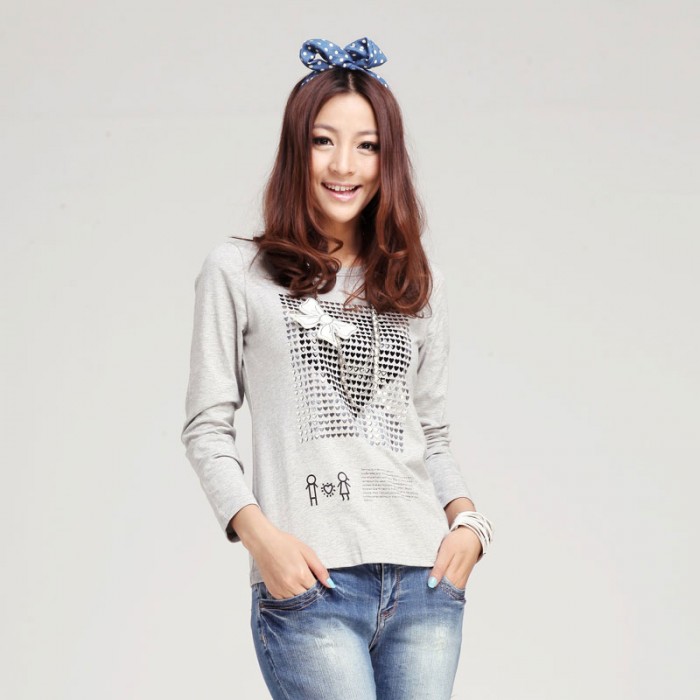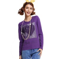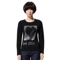 秋装 唐狮女款爱心烫钻亮片全棉圆领长袖t恤 #111121023010