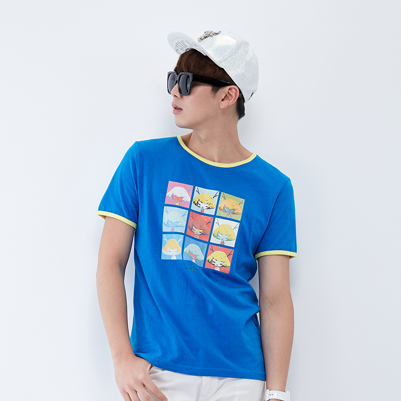 唐狮正品夏装男短袖T恤 男撞色圆领印花短袖T恤衫