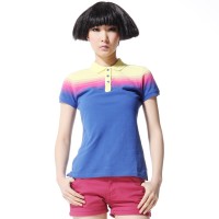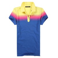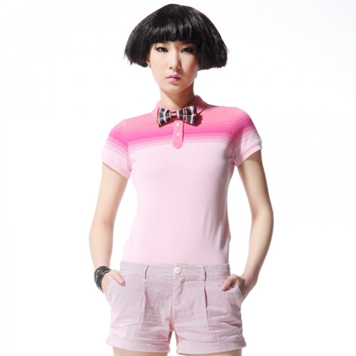 夏装 唐狮正品情侣款女渐变条纹翻领短袖polo衫 # 111221026014