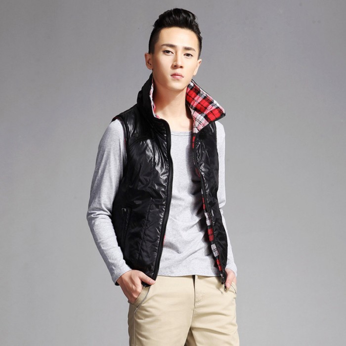 春装 唐狮男款帅气翻领休闲纯色棉背心马甲 #111311112104