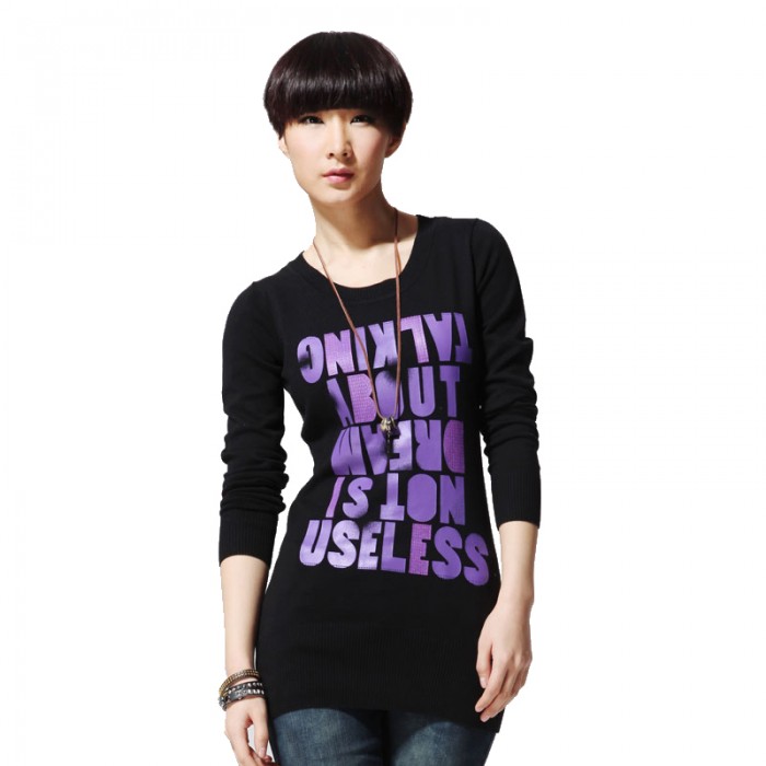 春装 唐狮字母印花圆领修身线衫 #111321043117