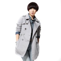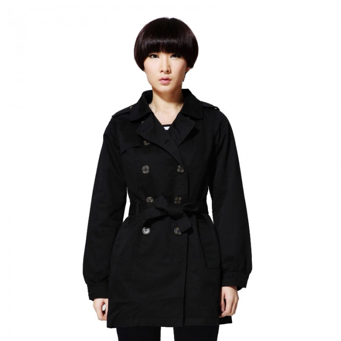 秋装 唐狮女装全棉纯色修身翻领双排扣风衣外套 #111321054008