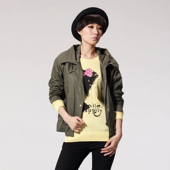 春冬 唐狮女士连帽下摆抽荷叶边纯色棉质风衣外套F721 #112121052050