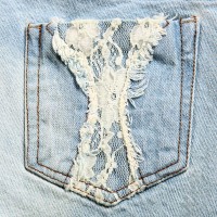 唐狮 夏装女衬蕾丝卷边牛仔短裤 #112222081484