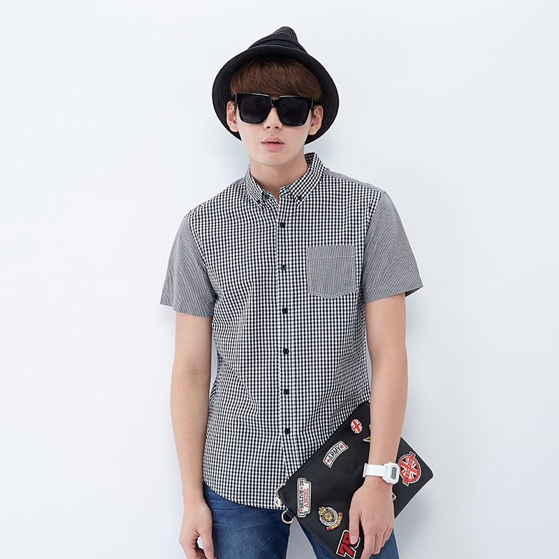 唐狮夏装正品男衬衫 男格子短袖休闲衬衫
