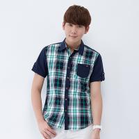 唐狮夏装正品男衬衫 男格子拼接短袖衬衫
