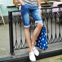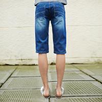 唐狮夏装牛仔裤 男格子布拼接基本款牛仔五分裤中裤