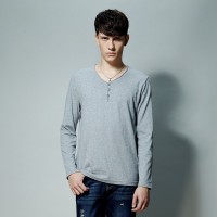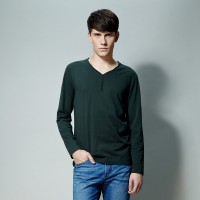 春装 唐狮正品男长袖素色半开胸T恤#614111023416