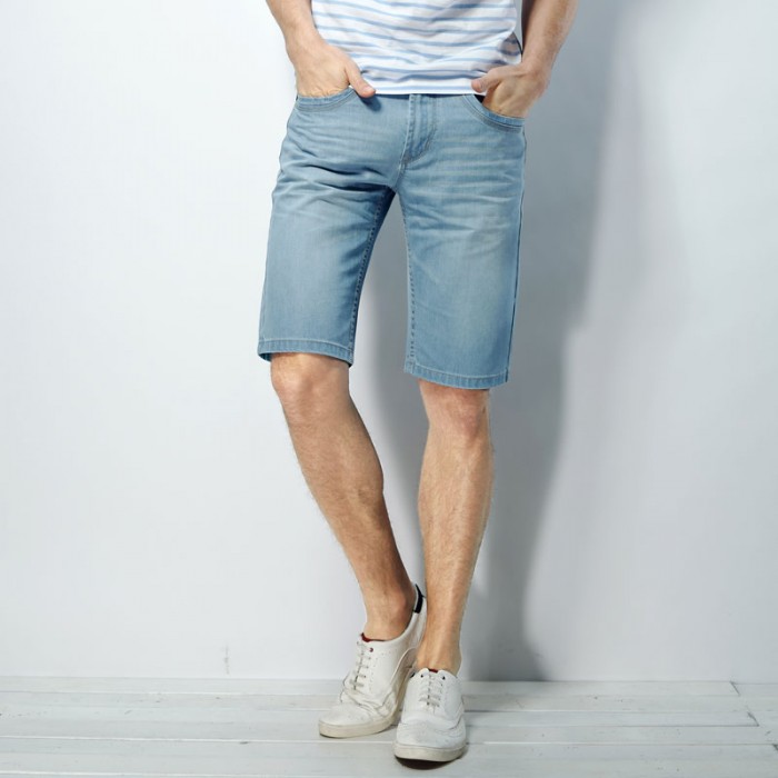 夏装 唐狮正品男腰头衬条纹牛仔中裤#614212082414