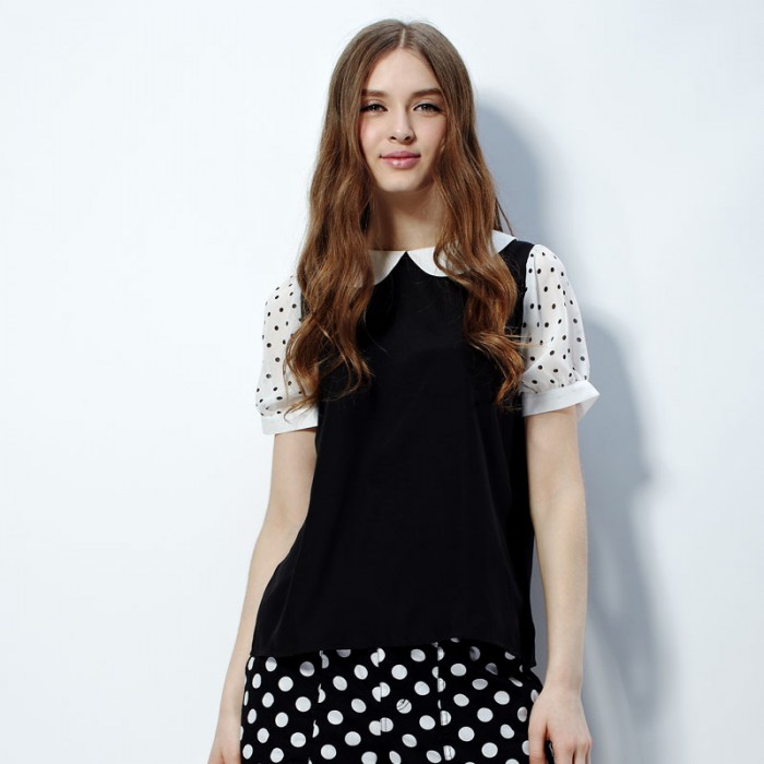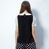 夏装 唐狮正品女波点拼接短袖衬衫#614221013402