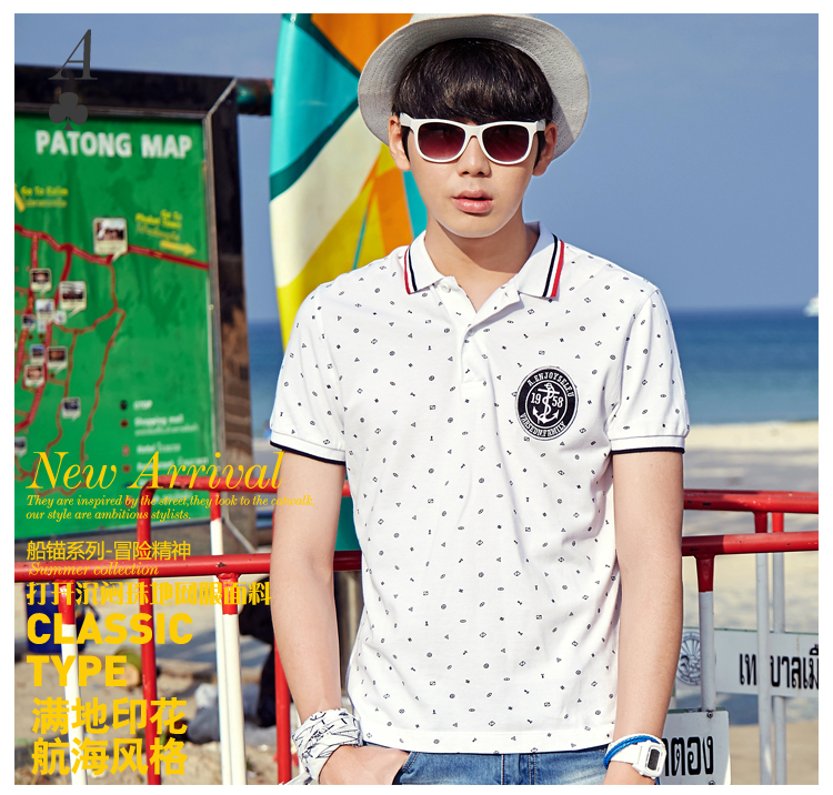 唐狮(TonLion)2015夏 男满地印花前胸机绣POLO衫 615211026417