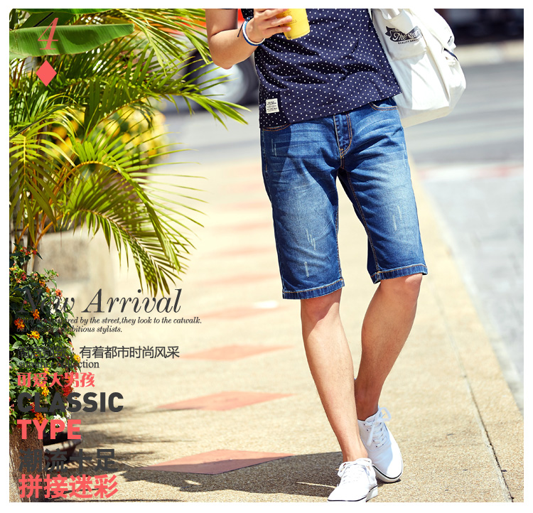 唐狮(TonLion)2015夏 男迷彩贴袋基本合体牛仔中裤 615212082408