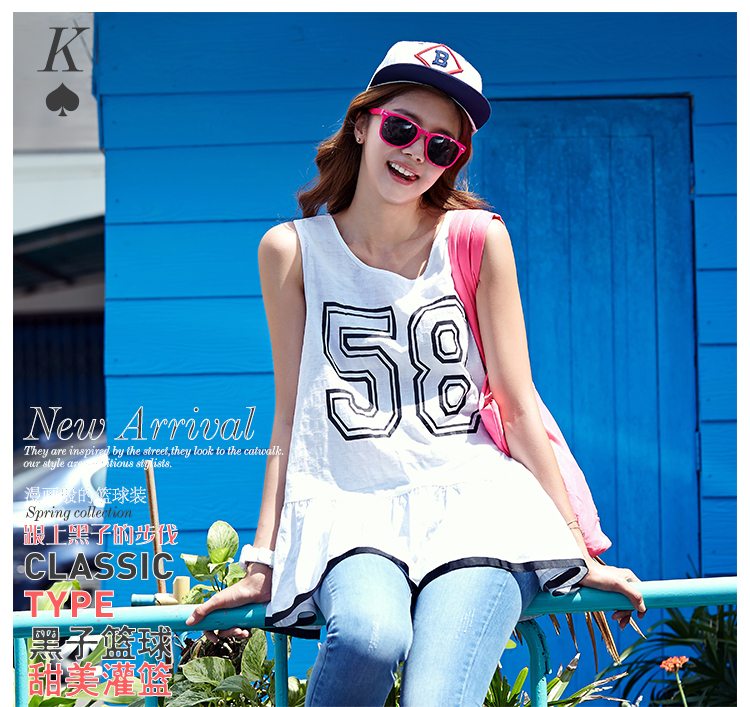唐狮(TonLion)女宽松数字印花无袖娃娃衫式圆领衬衫615221012407