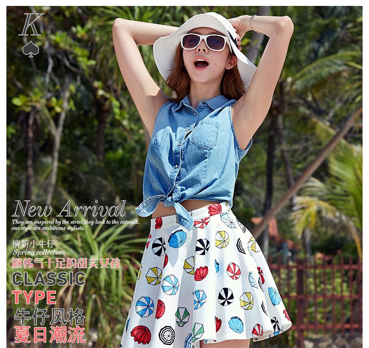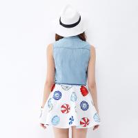 唐狮(TonLion)女无袖打结牛仔衬衫 615221012422
