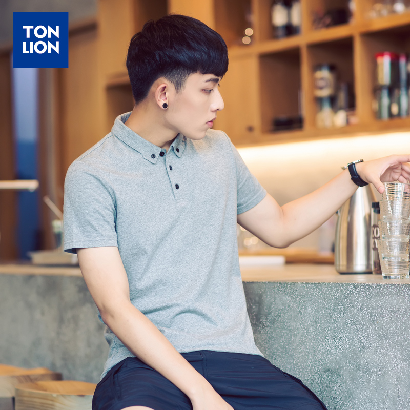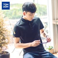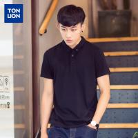 唐狮短袖polo衫男英伦翻领纯色T恤夏装韩版纯棉有领青年保罗衫