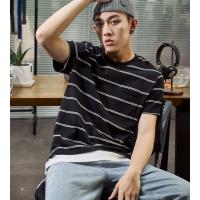 唐狮t恤男短袖条纹2018夏季青年圆领半袖体恤打底衫修身潮流男装