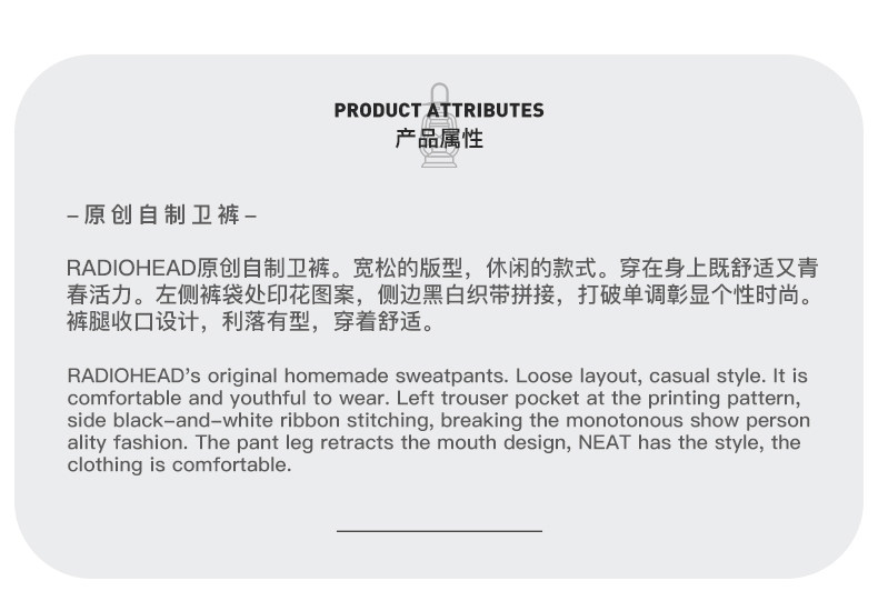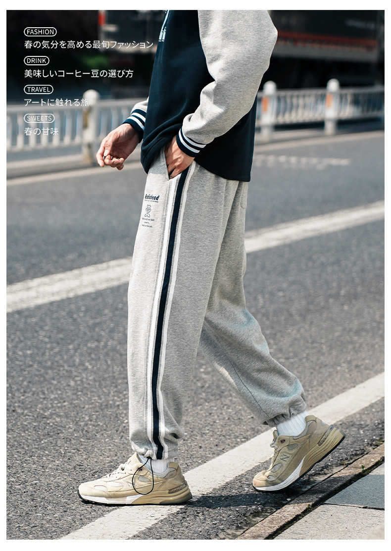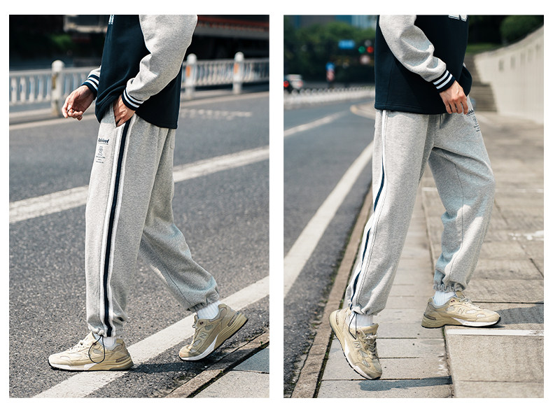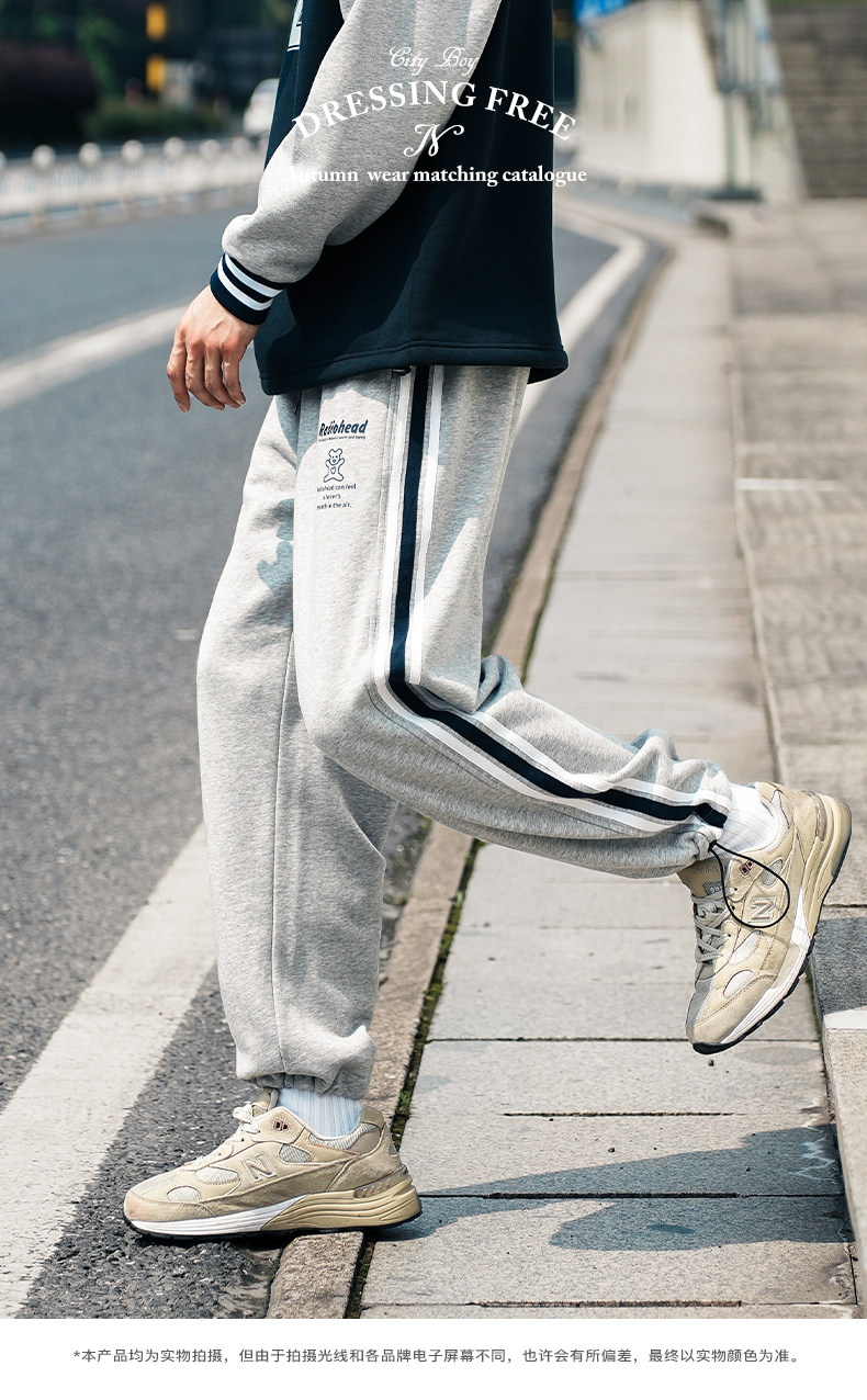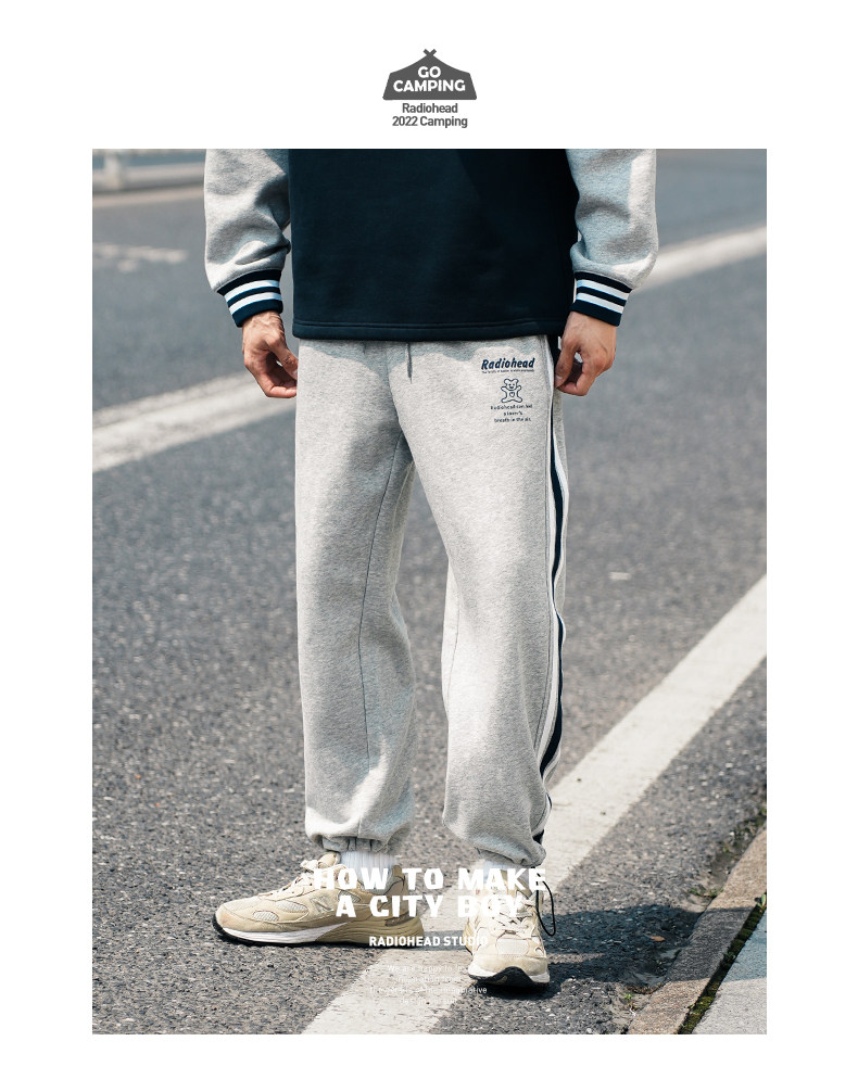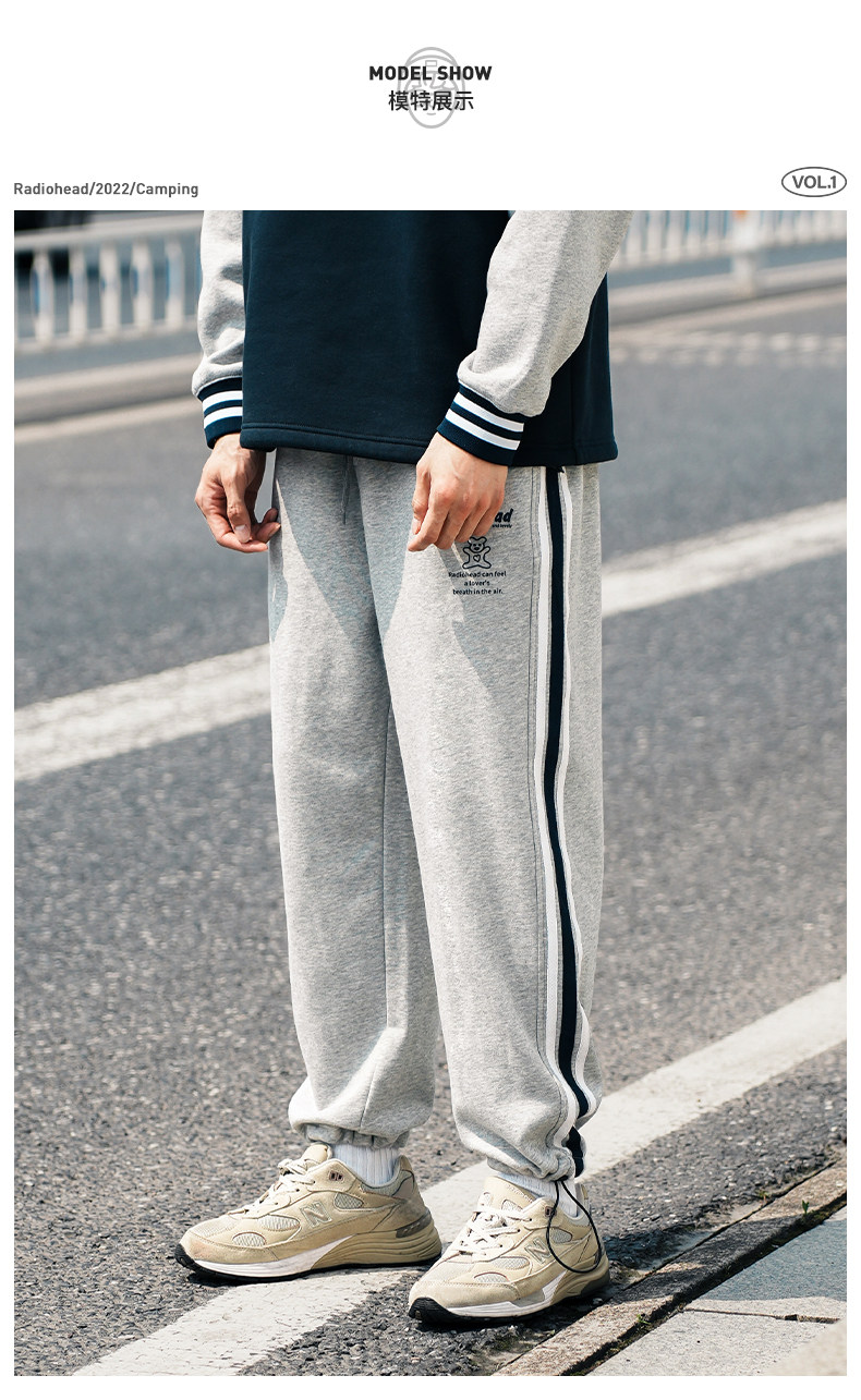 Radiohead休闲运动卫裤男宽松百搭2022秋季侧边织带毛圈束脚裤子