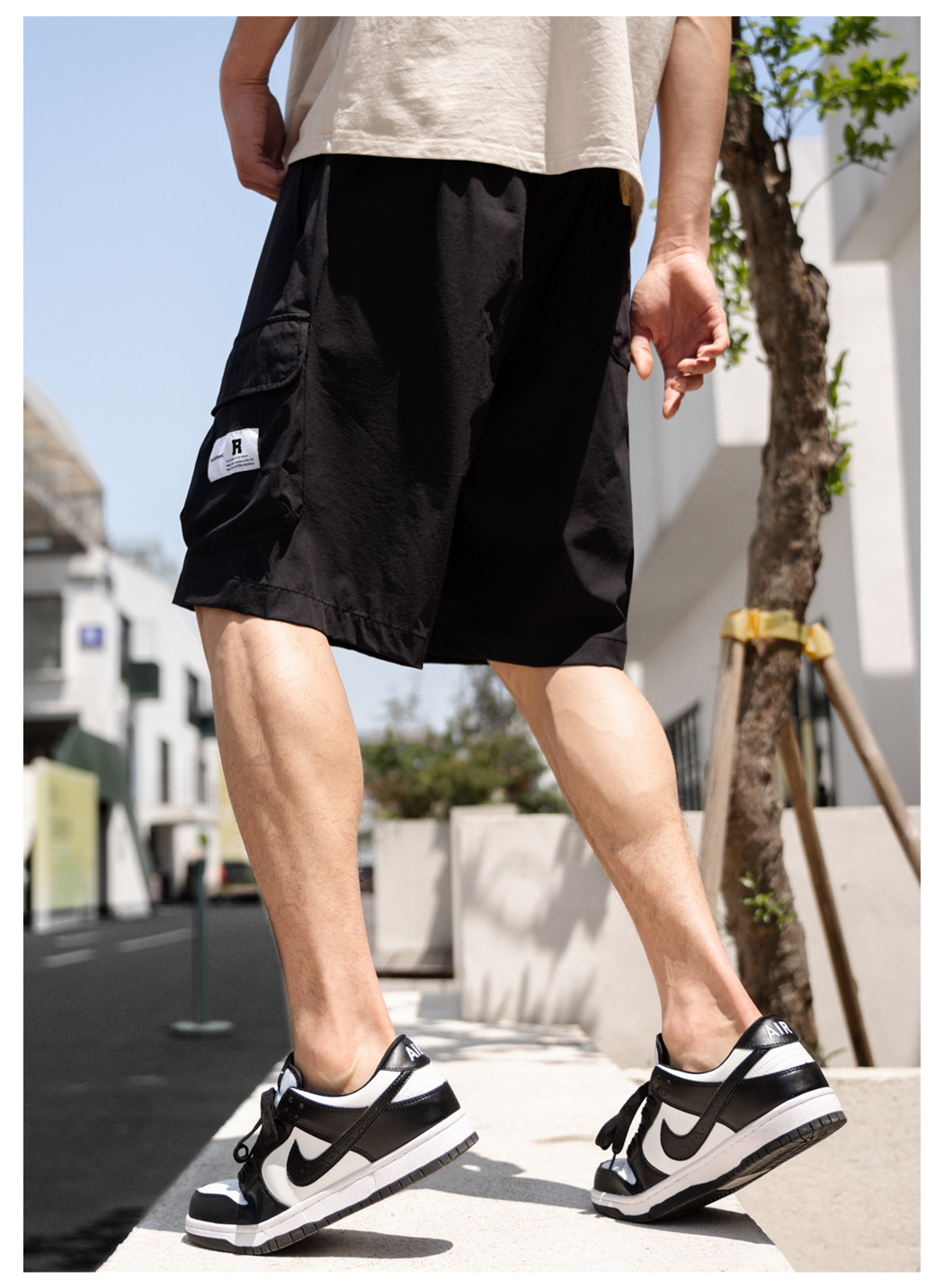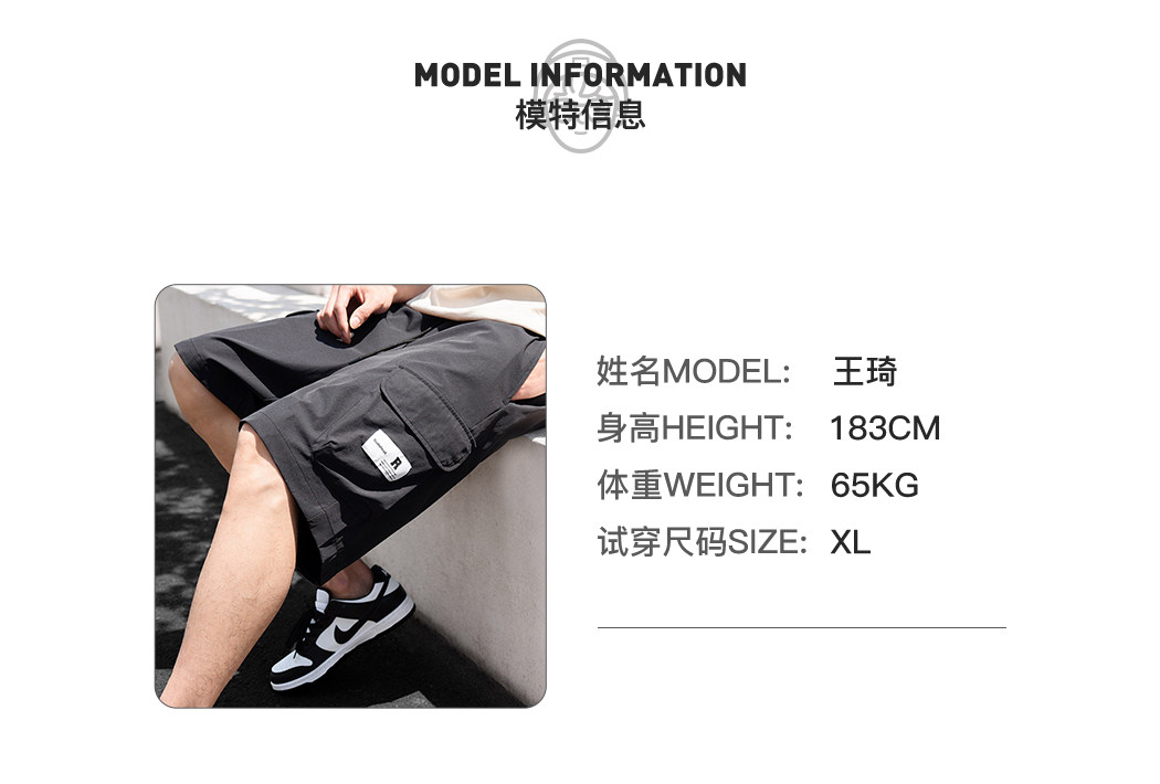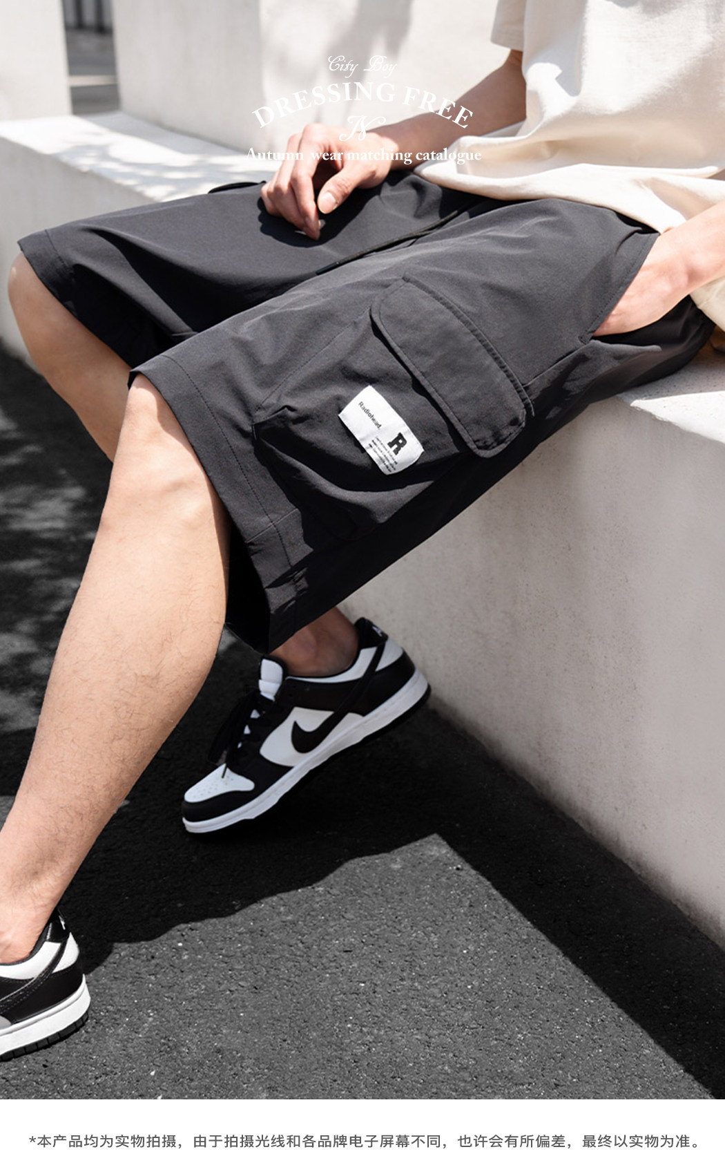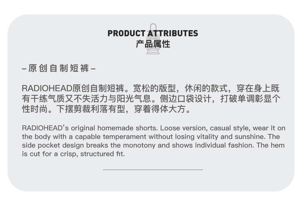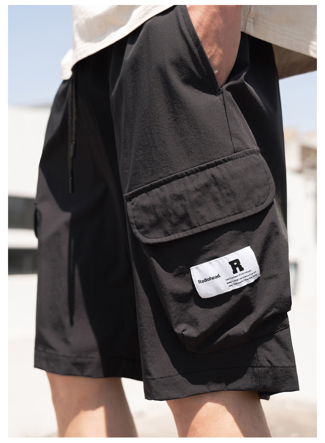 Radiohead休闲短裤男工装梭织黑色五分裤直筒宽松中裤23夏季新款