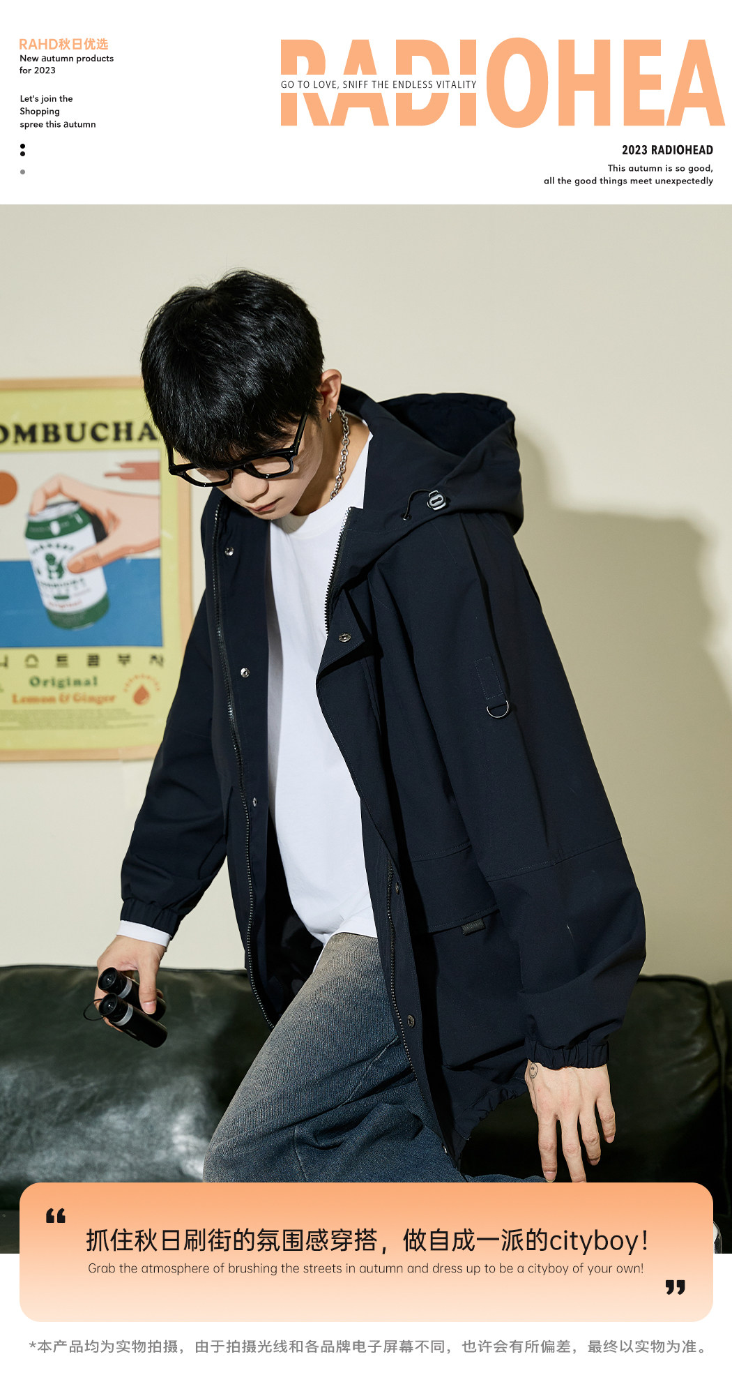 Radiohead2023秋季新款外套男户外连帽运动夹克衫冲锋少年上衣潮