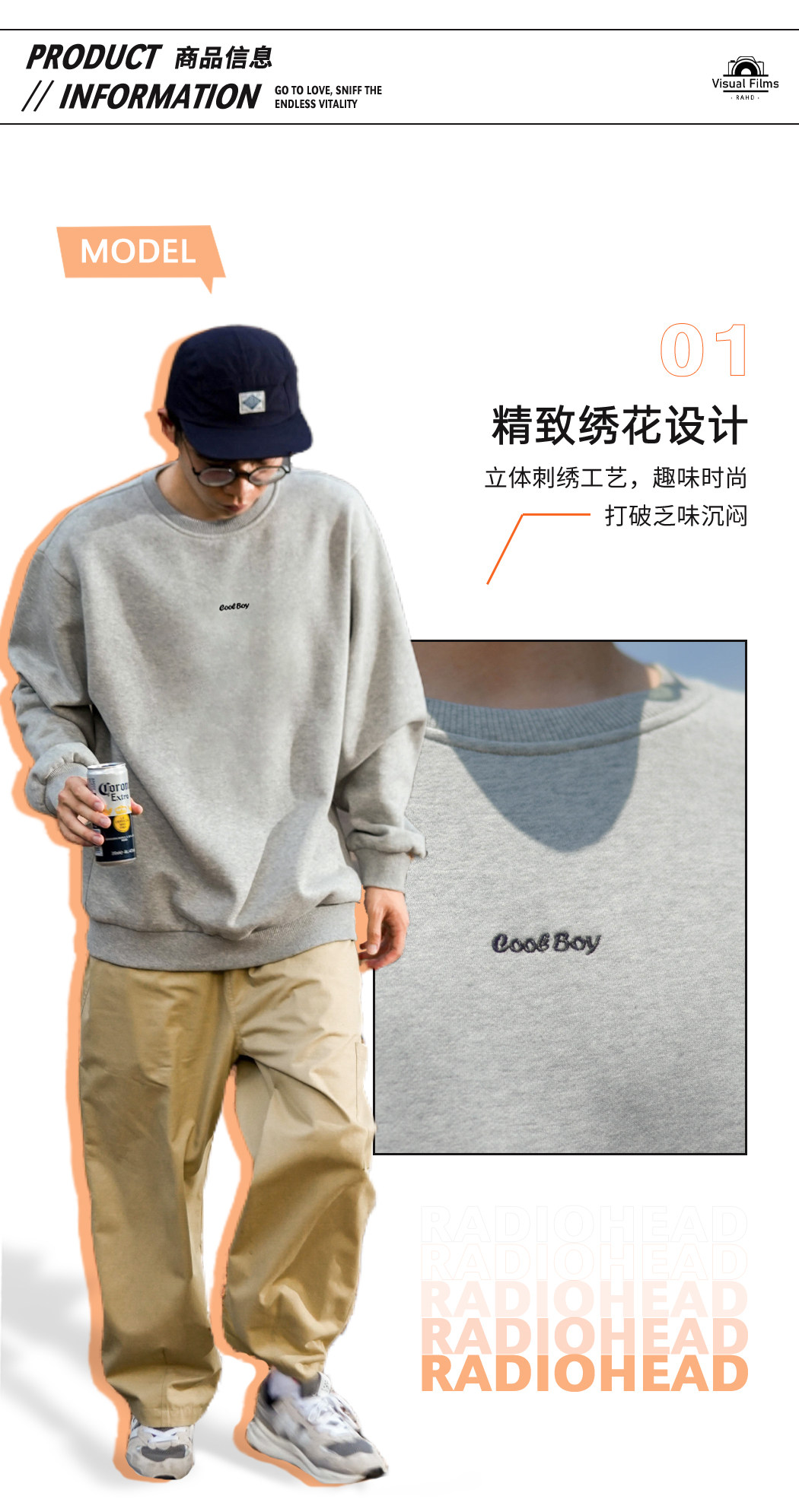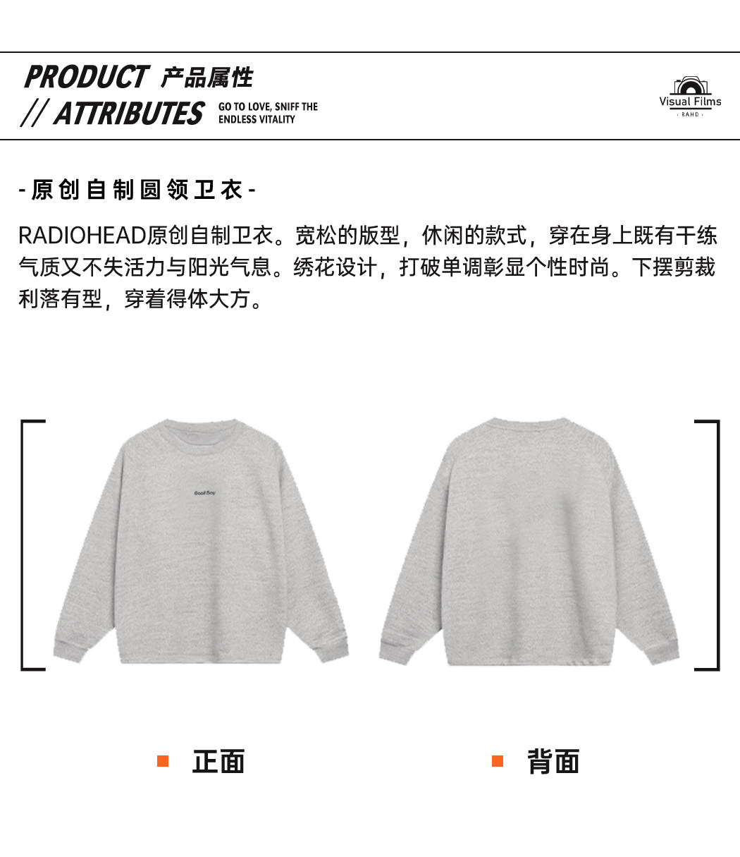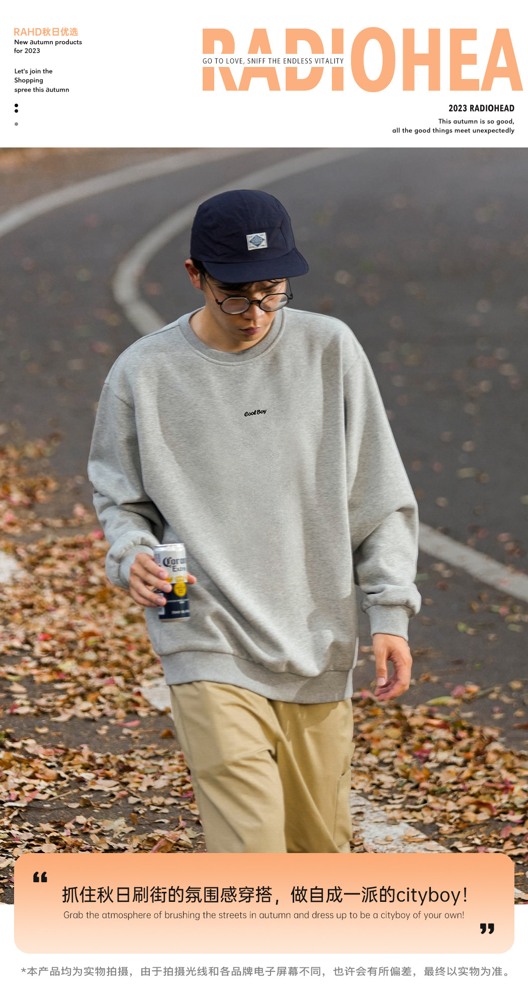 Radiohead23秋新款卫衣男灰色圆领休闲宽松上衣纯色百搭简约男生