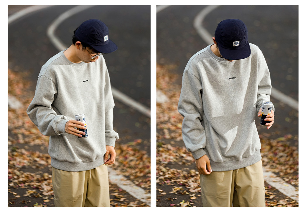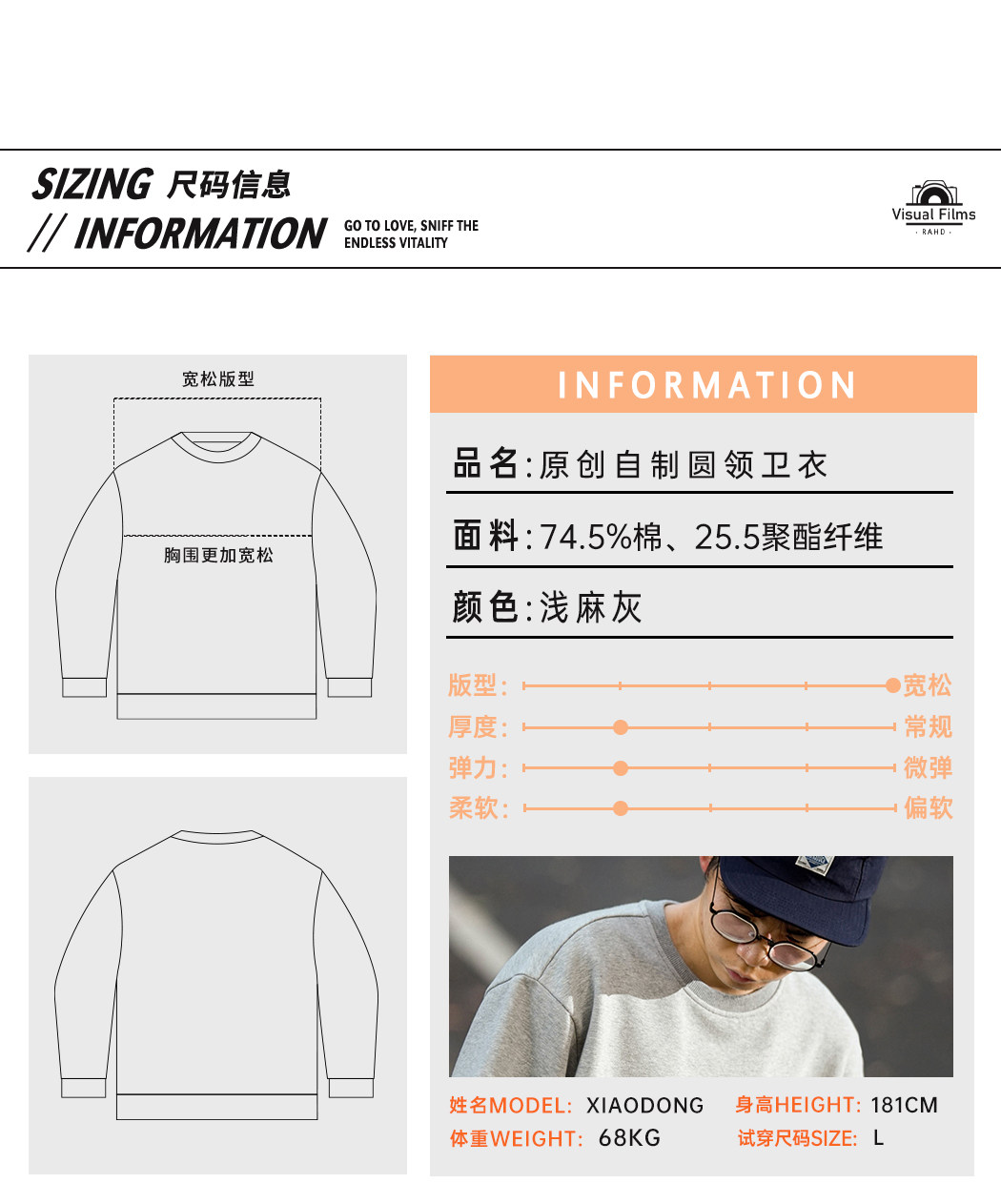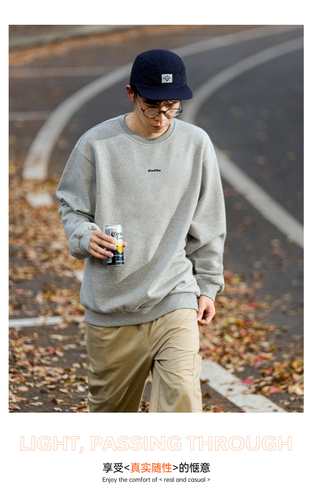 Radiohead23秋新款卫衣男灰色圆领休闲宽松上衣纯色百搭简约男生
