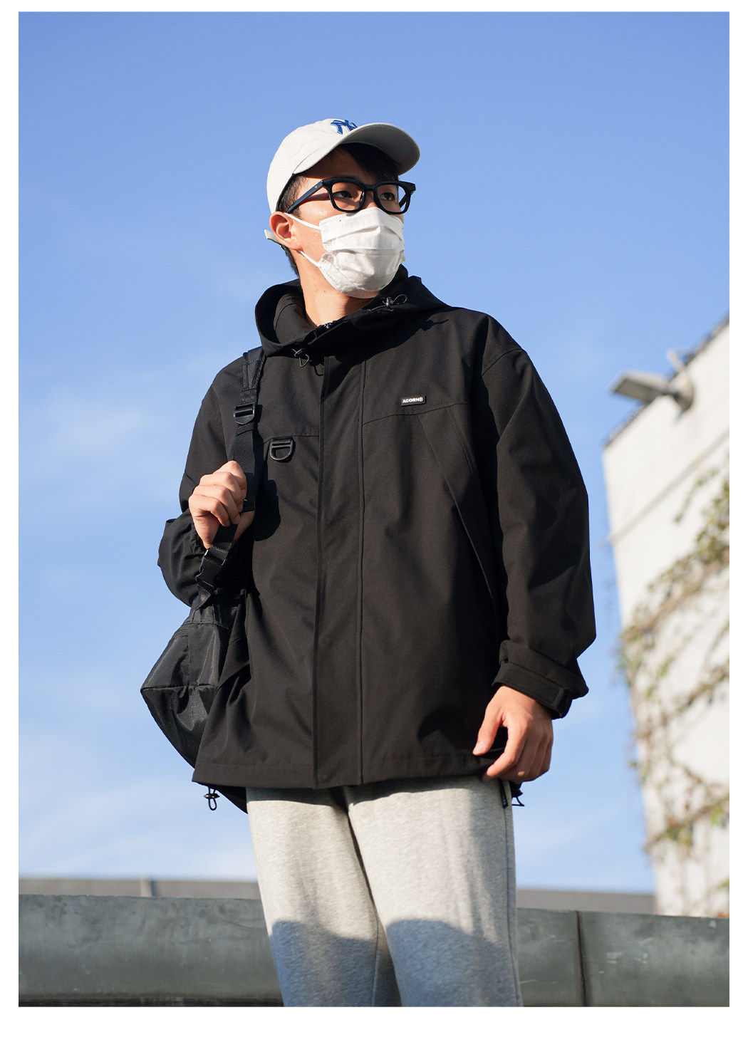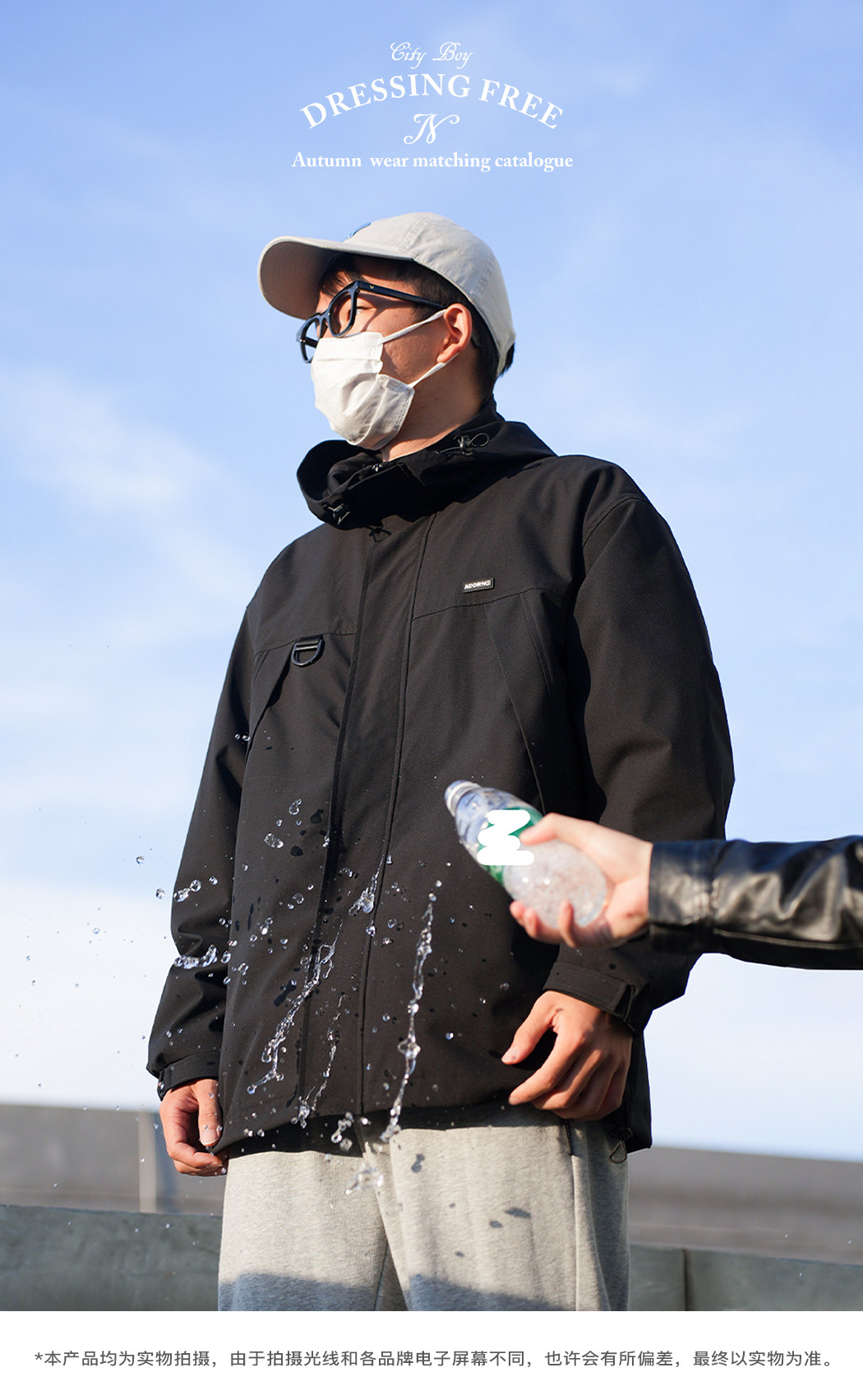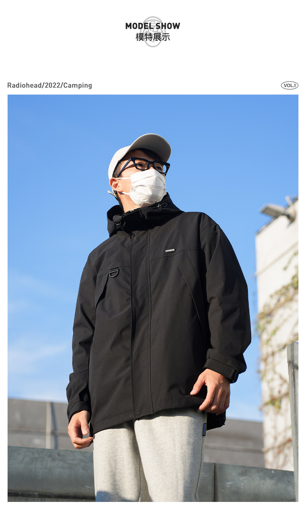 Radiohead2023春季新款夹克男防风防泼水外套连帽宽松简约黑色潮