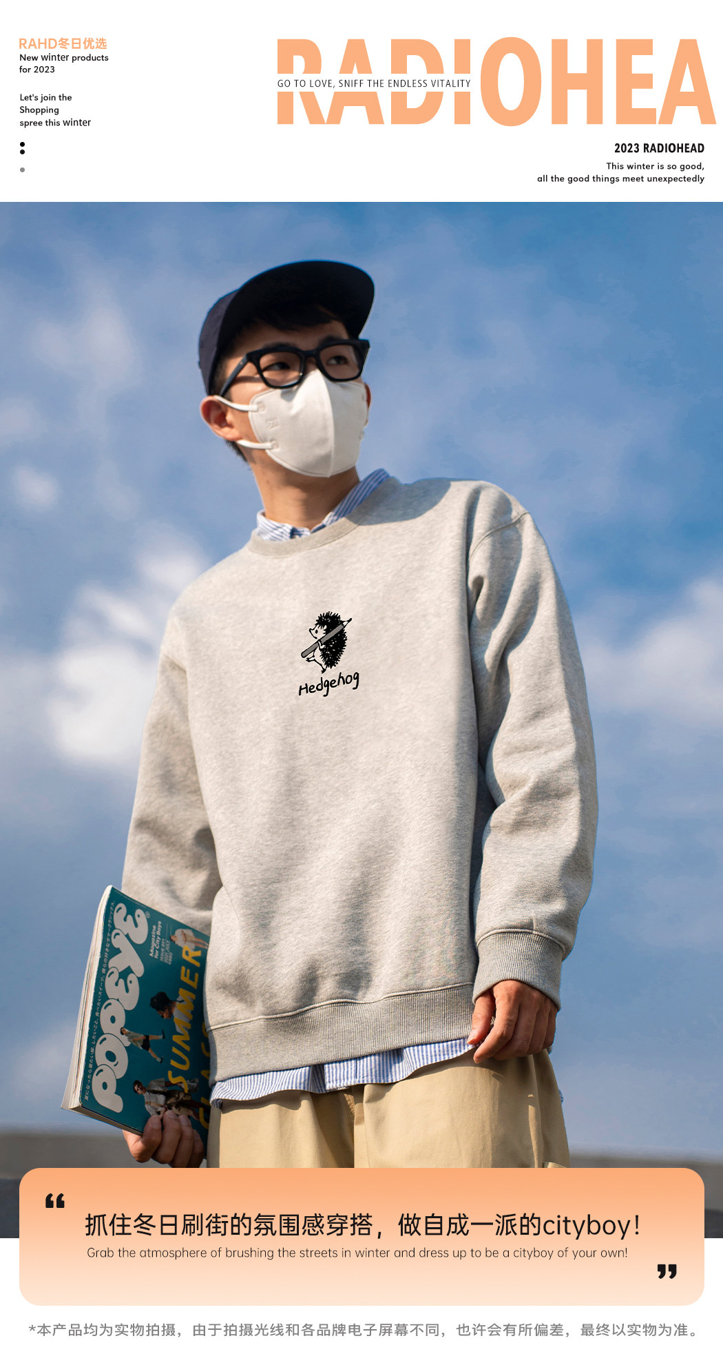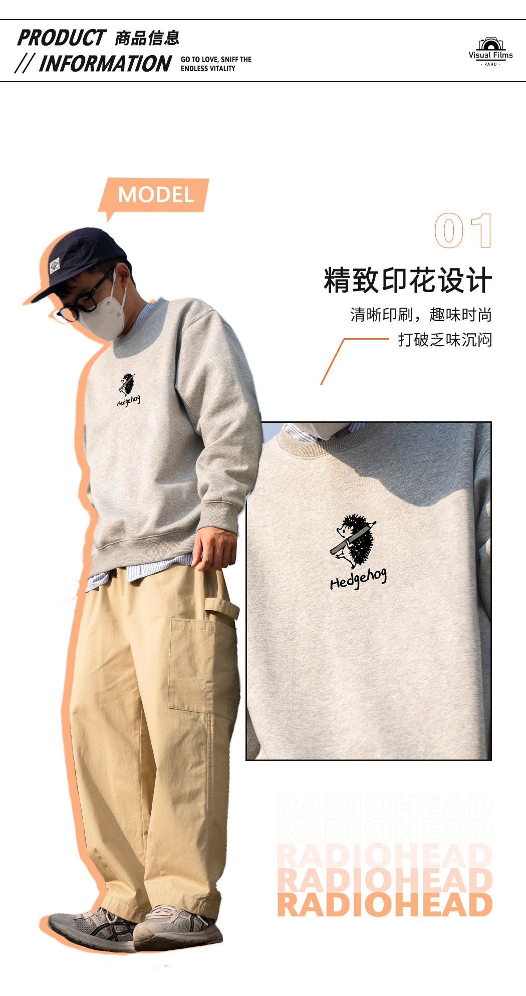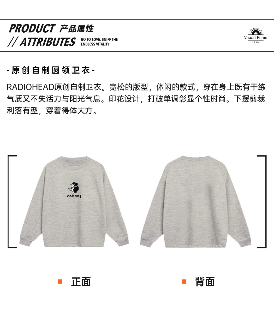 Radiohead圆领卫衣男休闲宽松潮宽松加绒保暖加厚上衣23秋冬新款