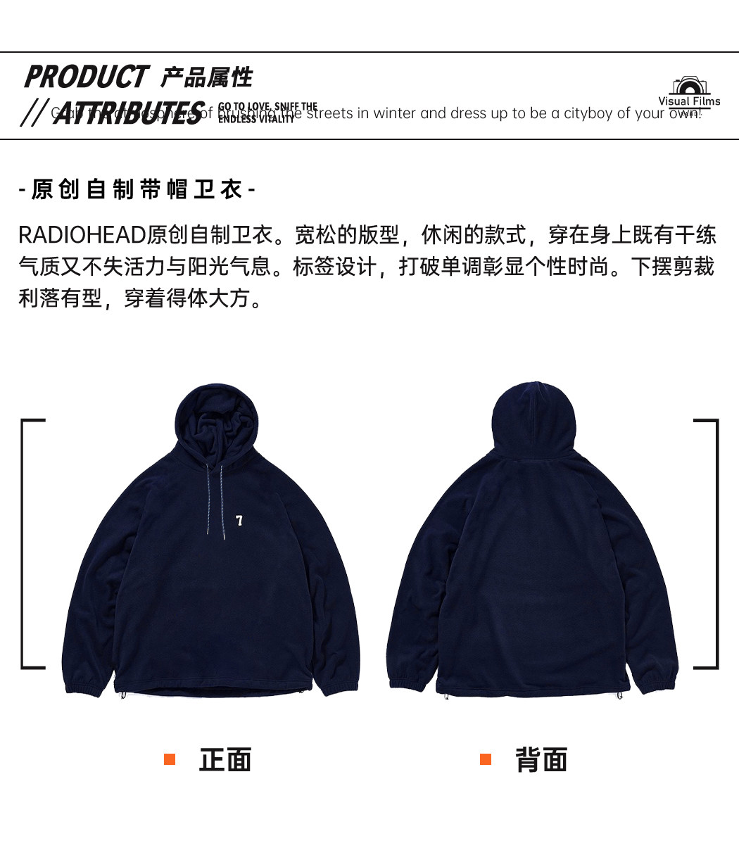 当前位置: 首页 > 时尚男装 > Radiohead2023秋冬新款连帽摇粒绒卫衣男藏青纯色宽松保暖抽绳潮