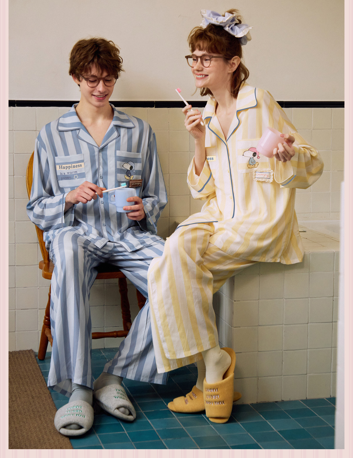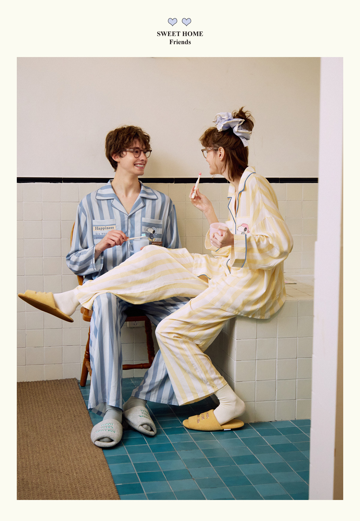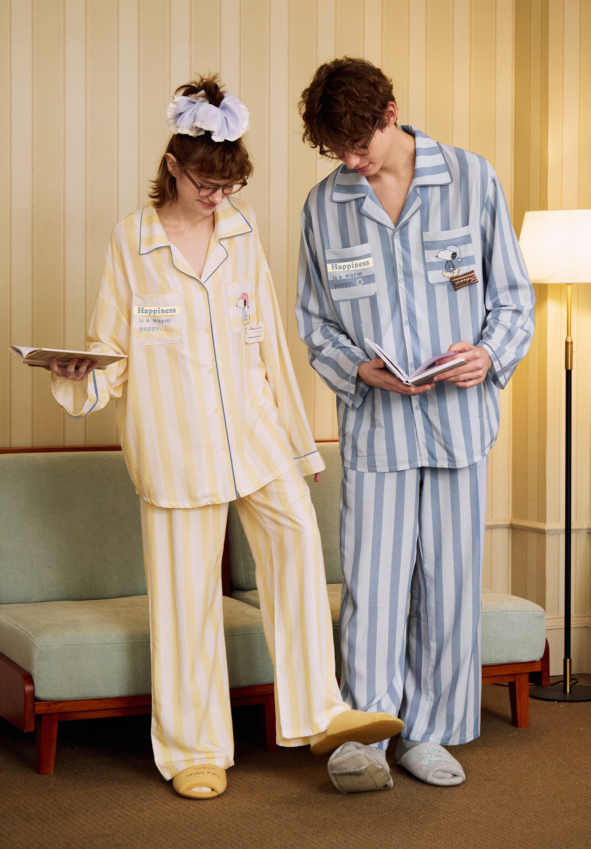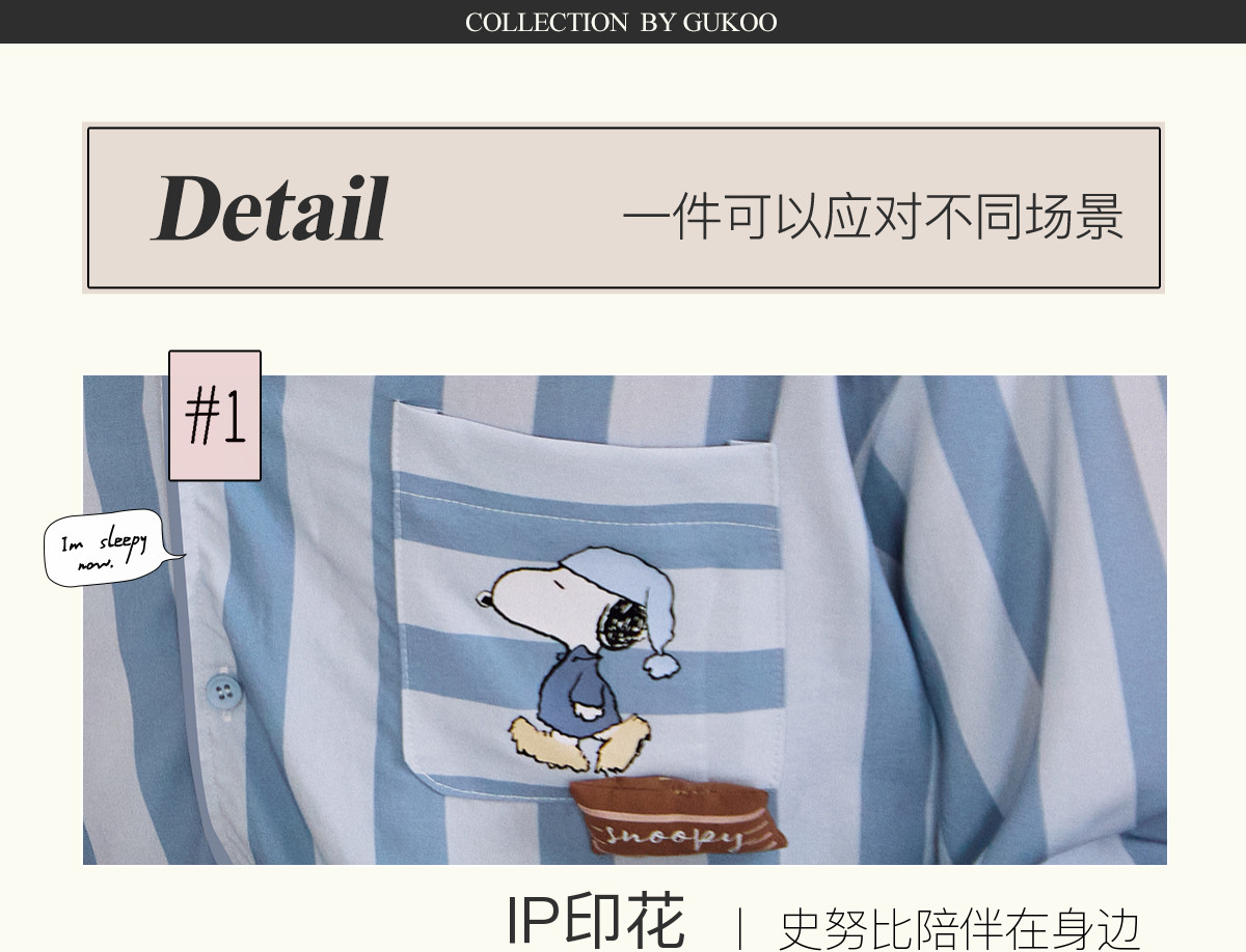 Gukoo果壳情侣长袖睡衣春秋新款史努比天丝女款家居服套装A