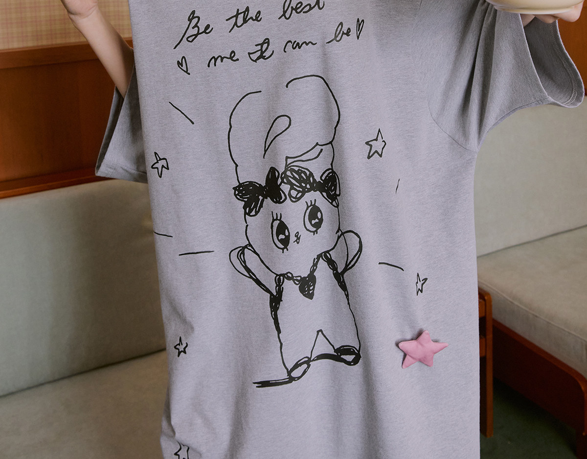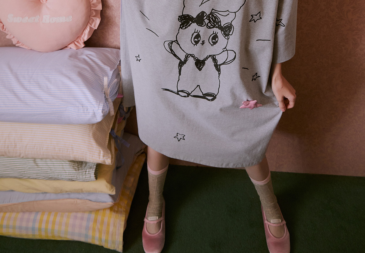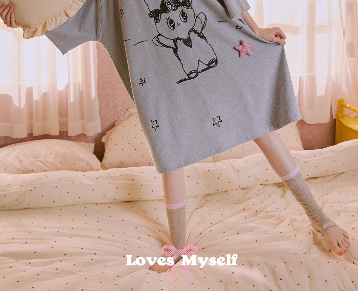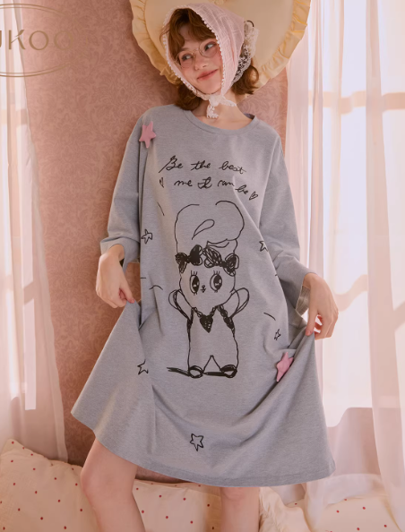 Gukoo/果壳长袖睡衣春夏艾丝乐小兔联名新款纯棉女士家居服睡裙A