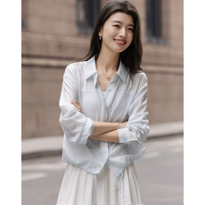 德玛纳【知识分子】春季气质翻领落肩衬衫设计感抽绳小个子衬衣女装上衣G541121246712