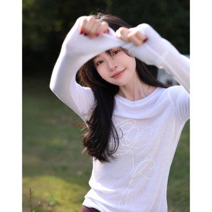 【空气慕斯打底】秋季艺术感线条印花圆领打底衫正肩修身女式t恤