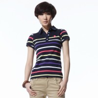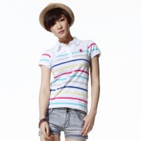 夏装 唐狮女士撞色条纹纯棉翻领polo衫 #111221026304
