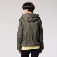 春冬 唐狮女士连帽下摆抽荷叶边纯色棉质风衣外套F721 #112121052050
