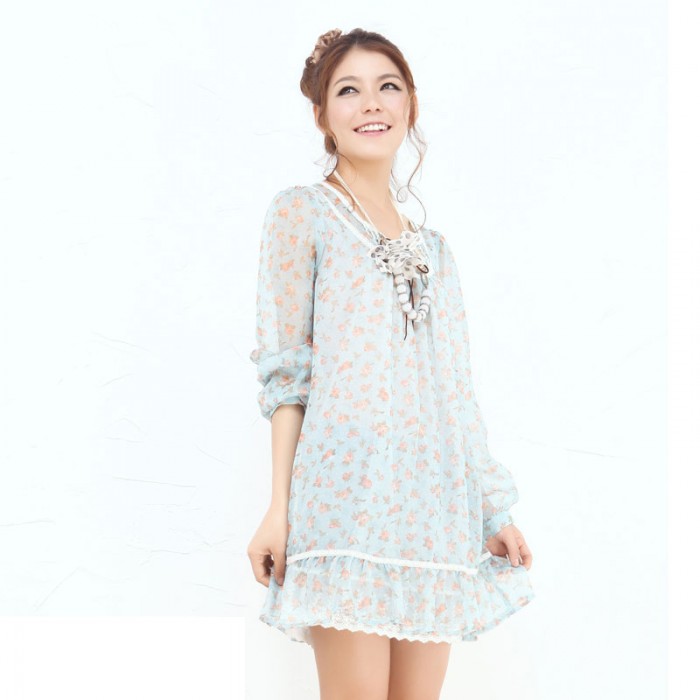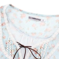 春装 唐狮女装田园碎花蕾丝花边圆领雪纺连衣裙S576 #112122104105
