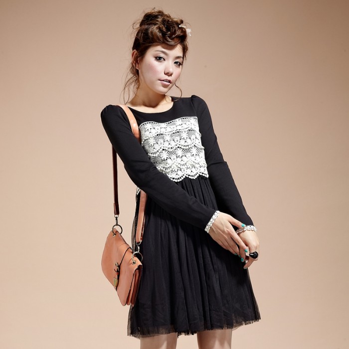 春装 唐狮日系甜美淑女梦幻蕾丝圆领连衣裙 #612321104407