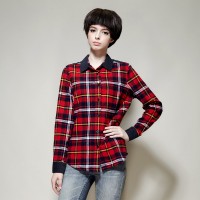 秋装 唐狮正品女拼接格子长袖衬衫#613321015423