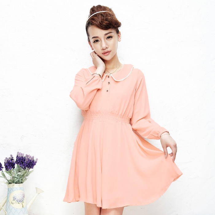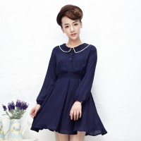 秋装 唐狮正品女素色雪纺连衣裙#613321104421