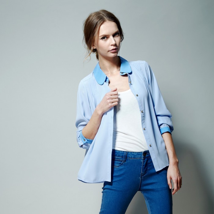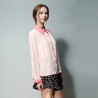 春装 唐狮正品 女撞色翻领衬衫#614121015430