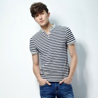 夏装 唐狮正品男都市小立领条纹短袖POLO衫#614211026417