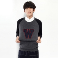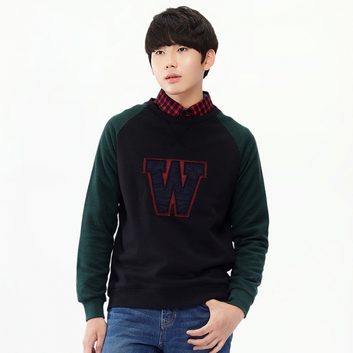唐狮2014秋新款正品卫衣 男圆领贴布绣字母撞色插肩袖卫衣