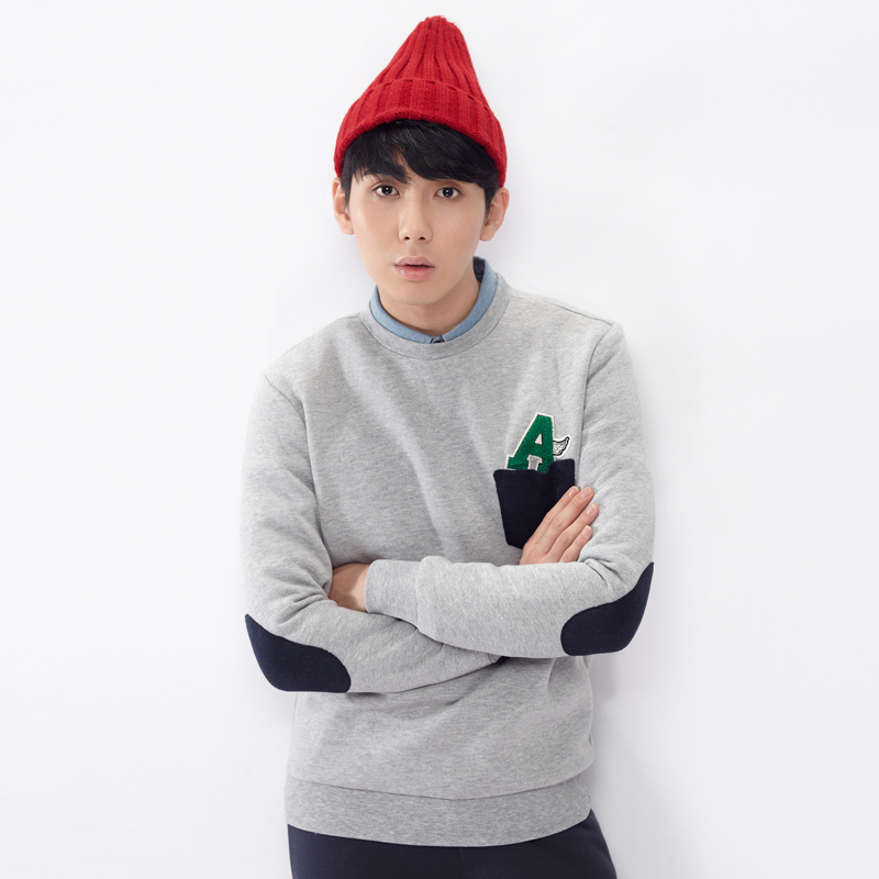 唐狮2014冬装新款卫衣 男圆领套头撞色口袋肘部贴布长袖加绒卫衣