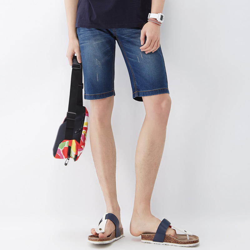唐狮(TonLion)2015夏 男迷彩贴袋基本合体牛仔中裤 615212082408