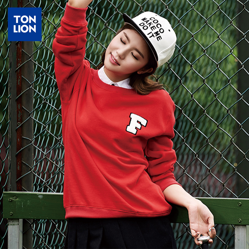 唐狮2015秋装新款卫衣 女字母印绣花圆领套头卫衣