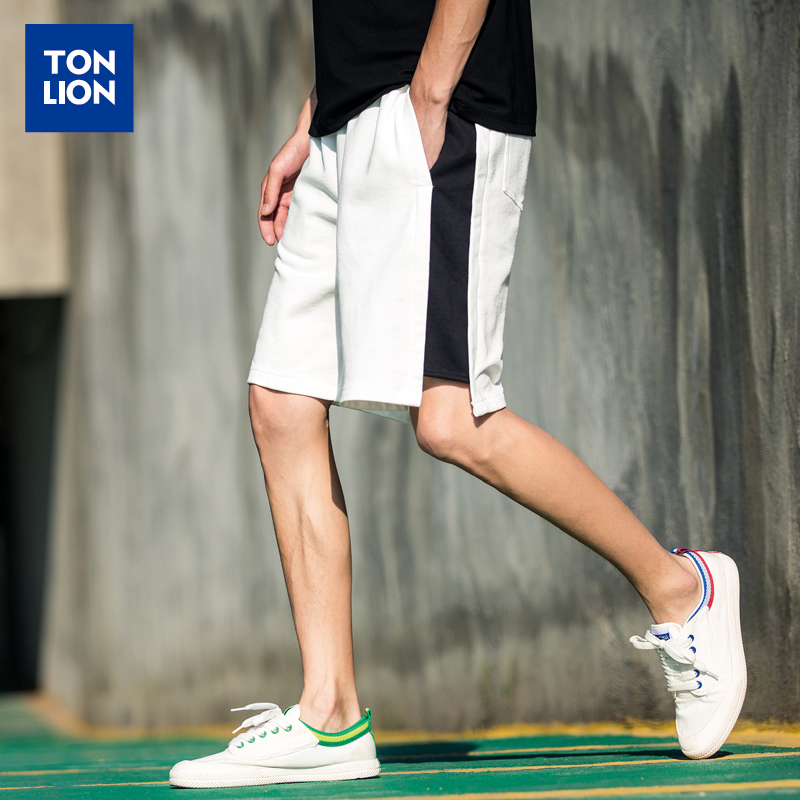 唐狮夏季运动短裤男薄款宽松休闲中裤拼接五分裤沙滩裤子马裤夏天