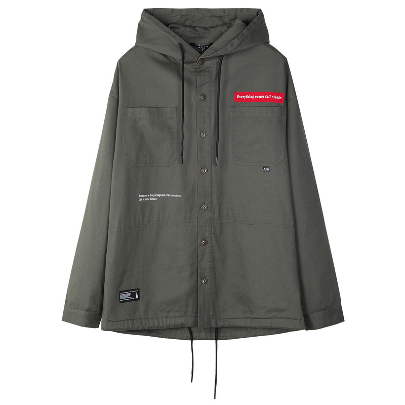 唐狮秋季工装衬衫男长袖连帽oversize韩版宽松学生衬衣外套潮