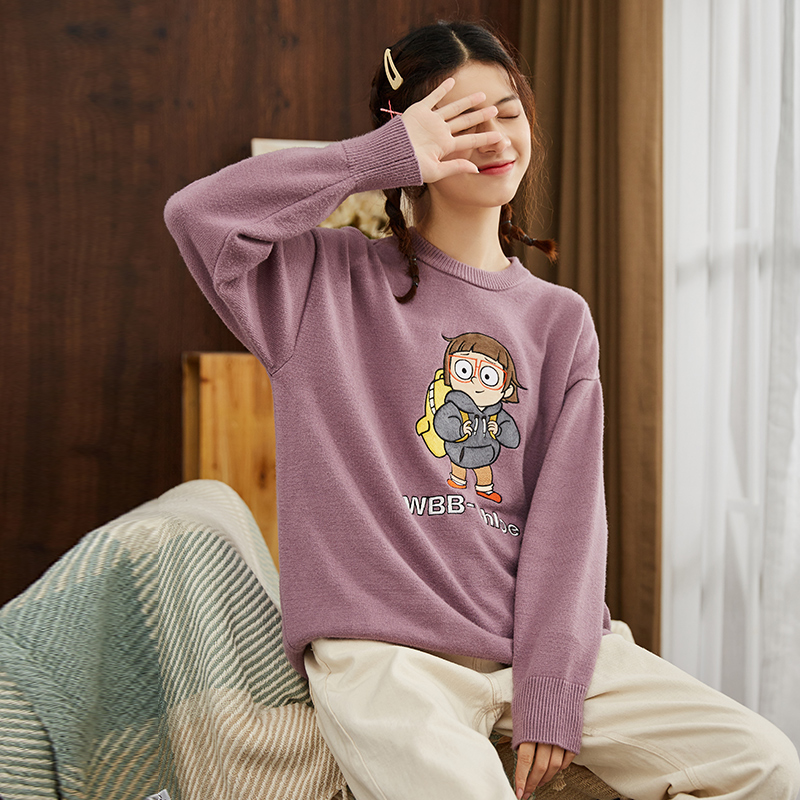 唐狮秋冬季款毛衣女针织衫宽松外穿上衣长袖...