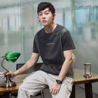 夏装款短袖T恤男拼接纯棉圆领上衣学生韩版修身衣服潮